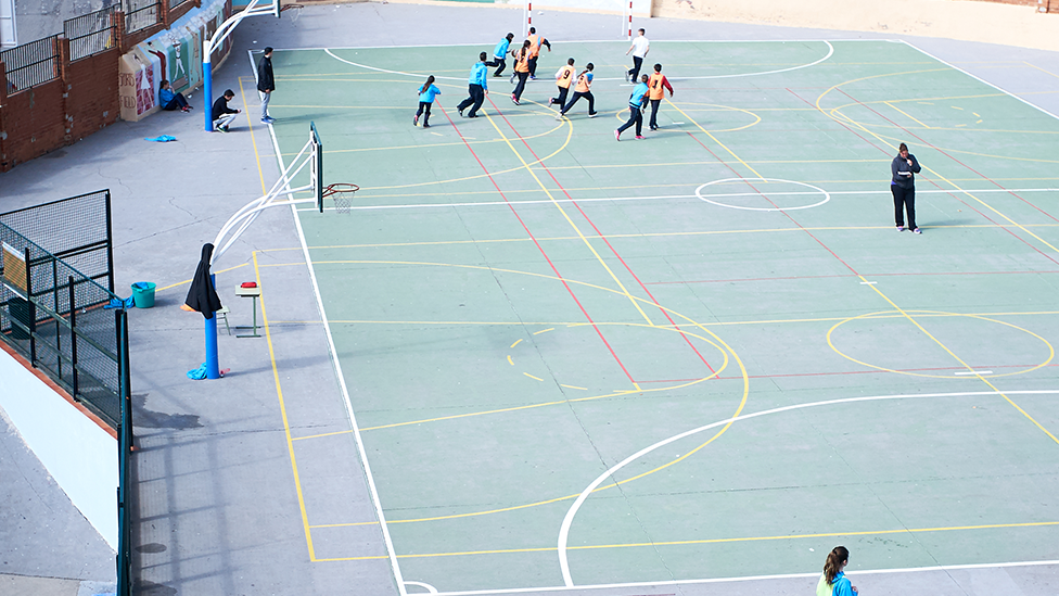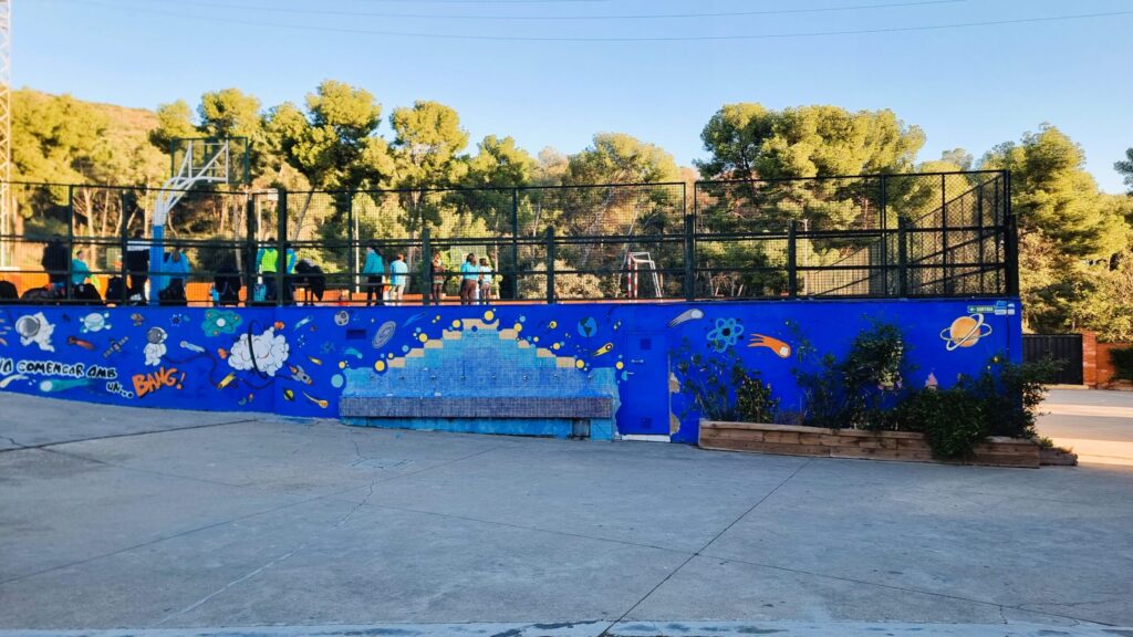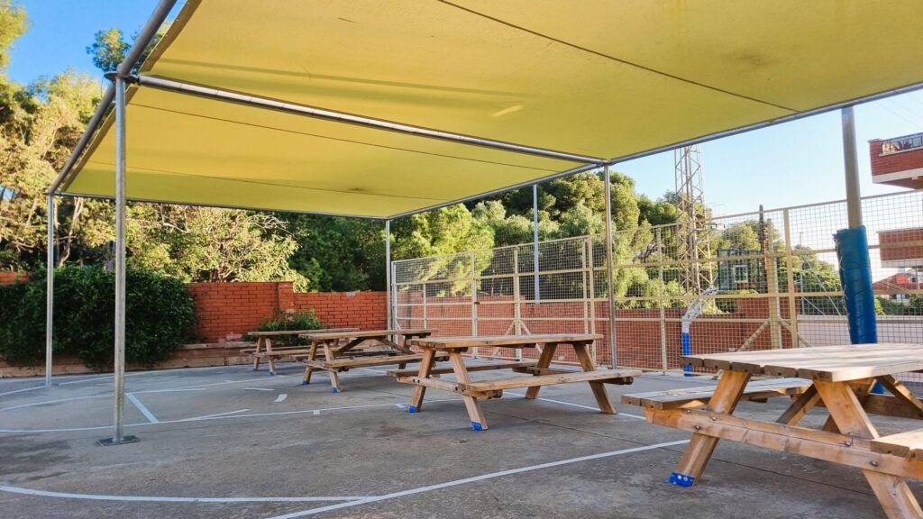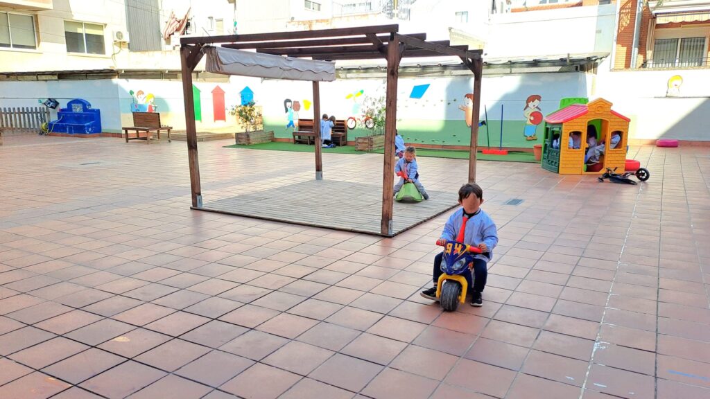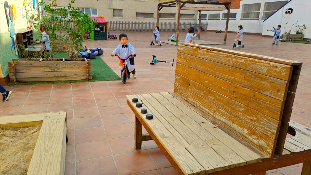 A l’exterior, tenim quatre espais de lleure diferenciats, adaptats a les necessitats de cada etapa i pensats per fomentar el joc, la convivència i el benestar.